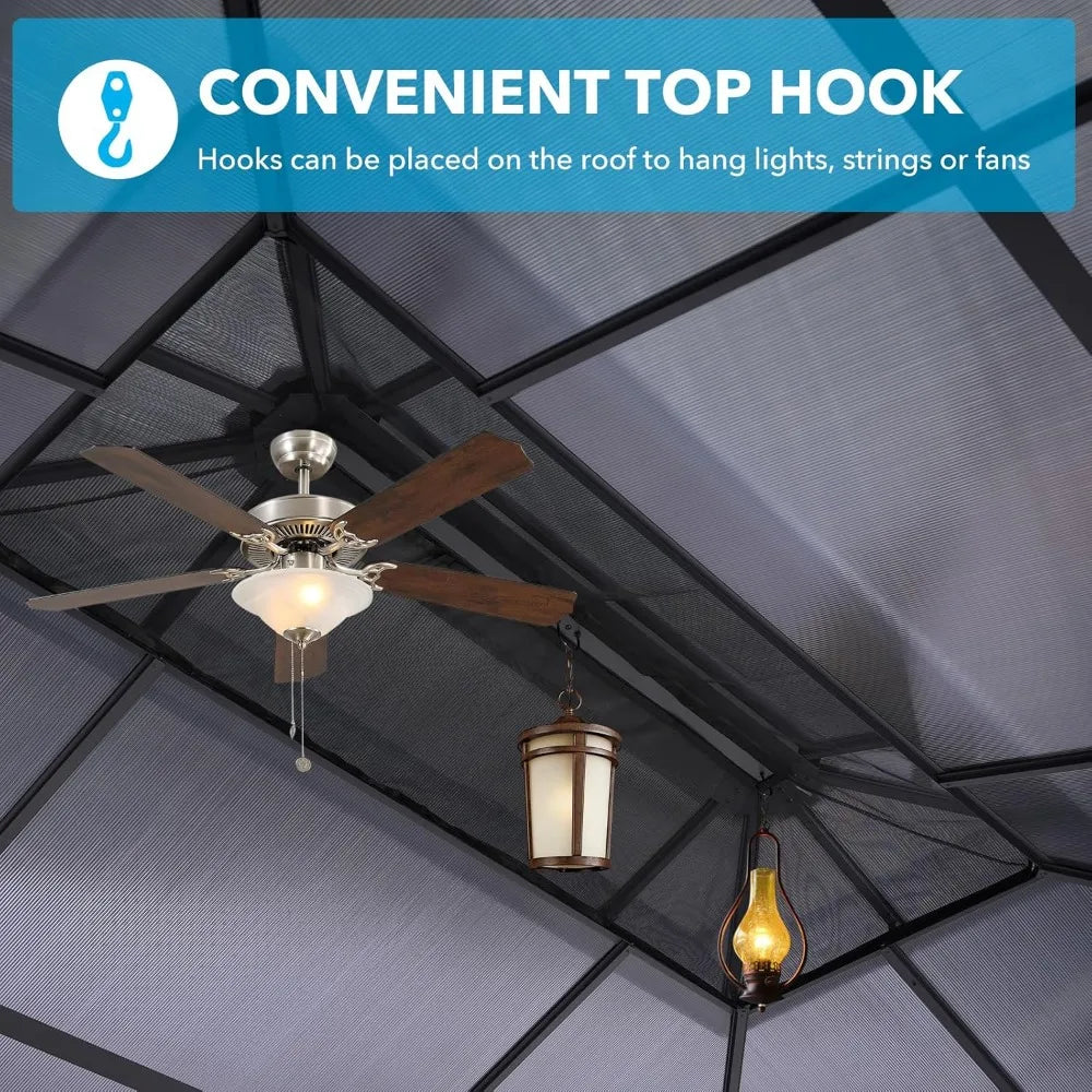 - Sun-safe comfort: The double-polycarbonate roof blocks harsh sun, reduces glare, keeps interior temperatures cooler, and preserves natural daylight for enjoyable lounging.
