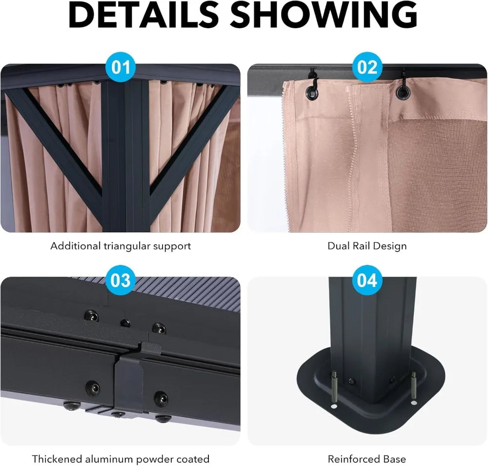 - Practical details: Removable privacy curtains, zipper mosquito net, eave drainage, and top hooks for fans or lights make setup effortless.