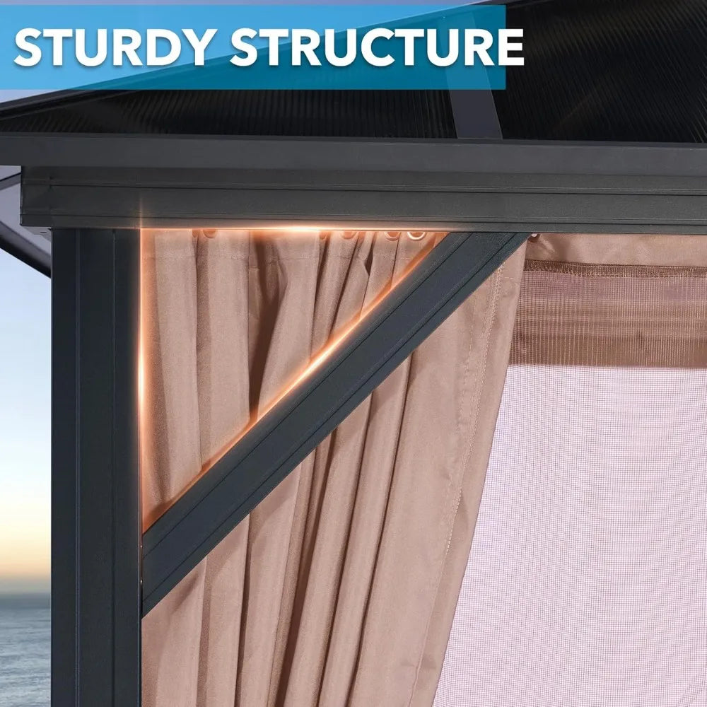 XMSJ Hardtop Gazebo With Double Polycarbonate Roof Netting