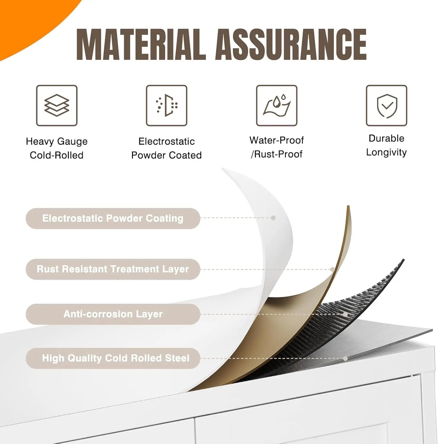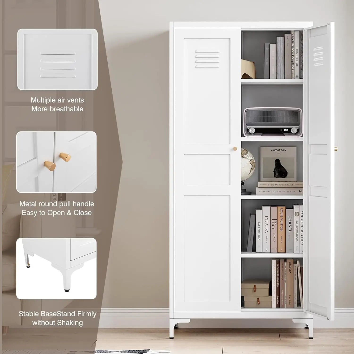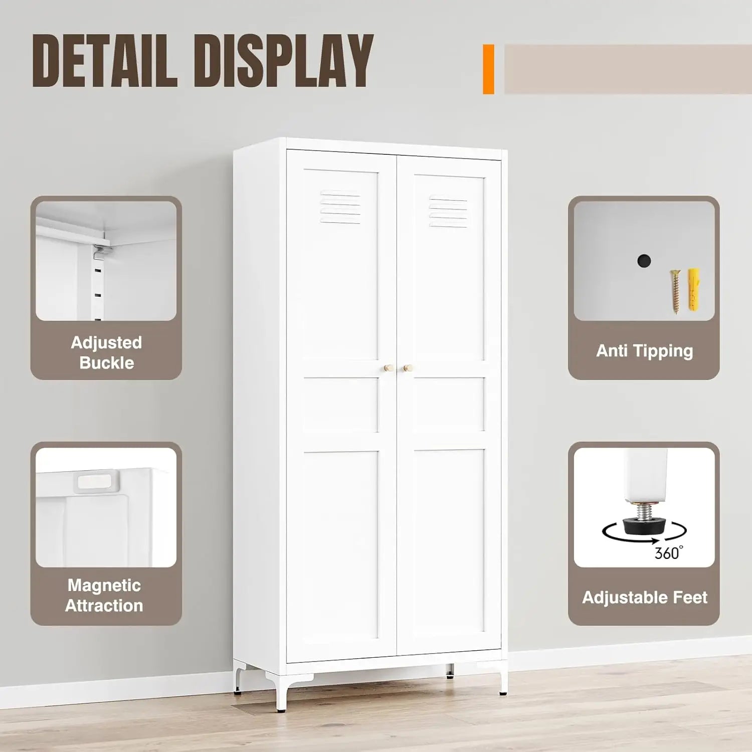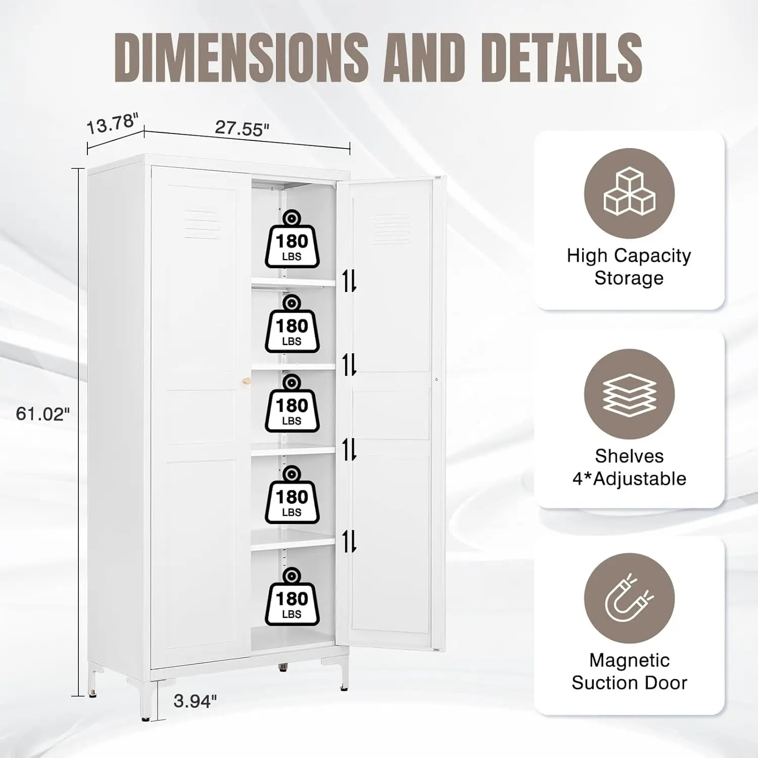 2 Doors and 4 Adjustable Shelves - 61" White Kitchen Pantry Storage 5-Tier Tall Steel Cabinets Locker for Kitchen,