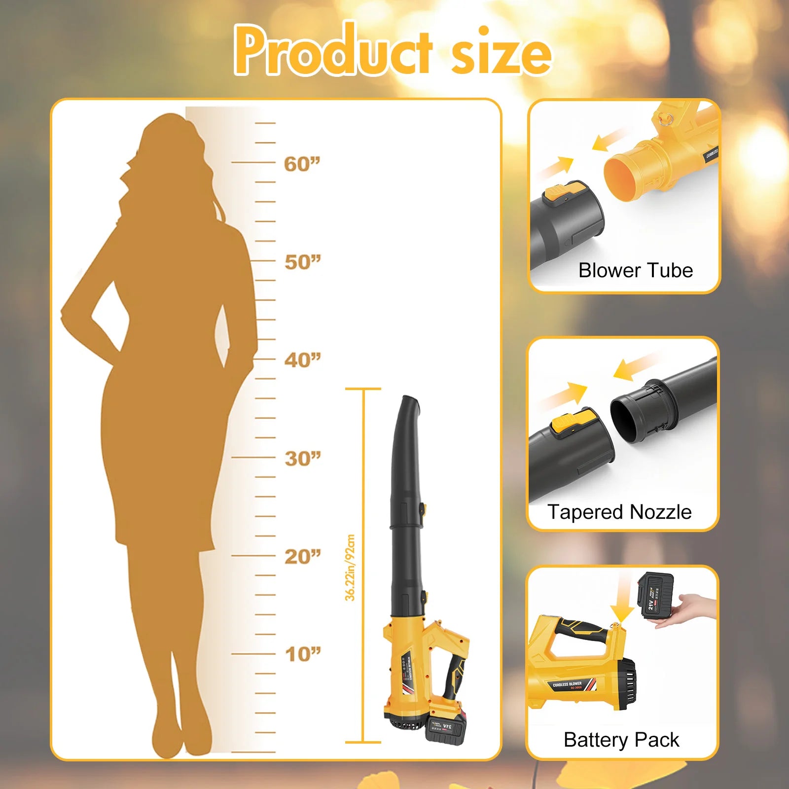 【Ergonomic & Easy to Use】Comes with a comfortable shoulder strap and two extension tubes that adjust to different heights. Reduces physical strain during long operations—no bending or fatigue. Suitable for yards, streets, workshops, car cleaning, and equipment dusting. One tool for multiple scenarios.