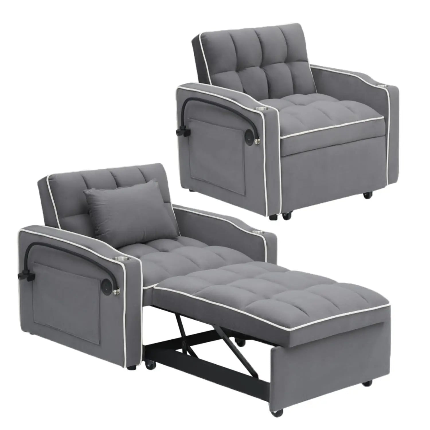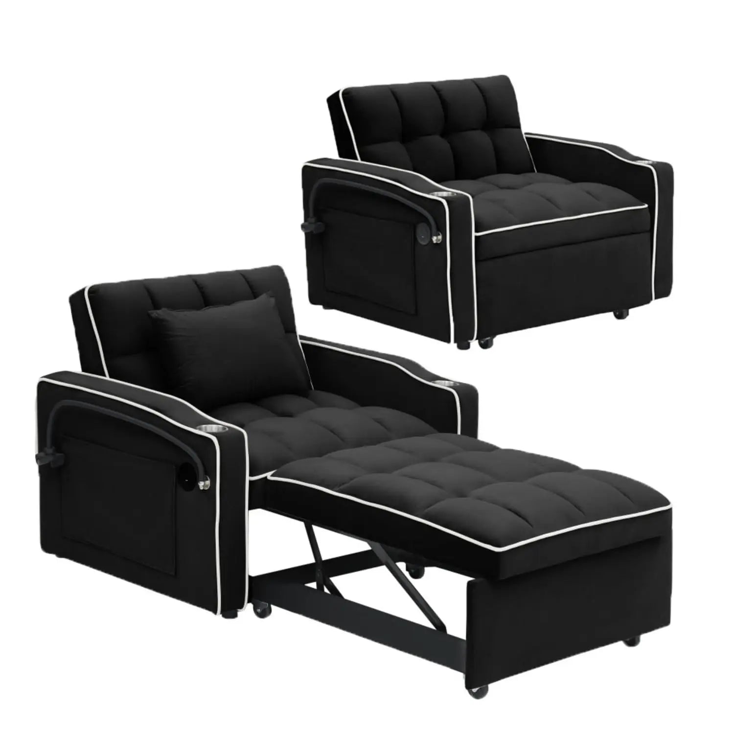 1️⃣ 3-in-1 multi-functional design: modern velvet fabric with contrasting trim, integrating sofa, recliner and single bed, easily adaptable to various scenarios of meeting guests, reading, and taking a lunch break. It is a small space artifact.