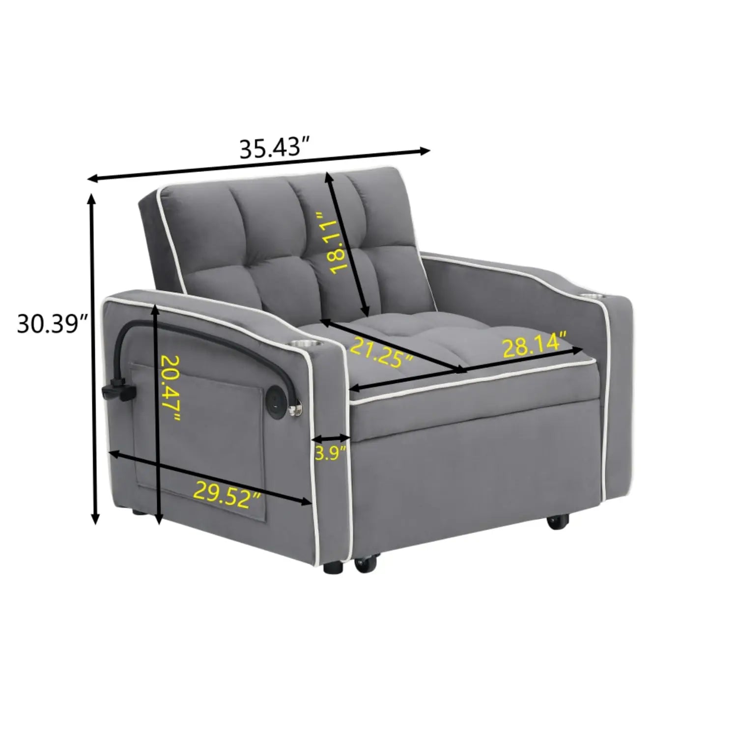 3 in 1 Modern Velvet Convertible Pull Out Sofa Bed, Upholstered Convertible Sleeper Chair Couch Bed with Adjustable, Customized