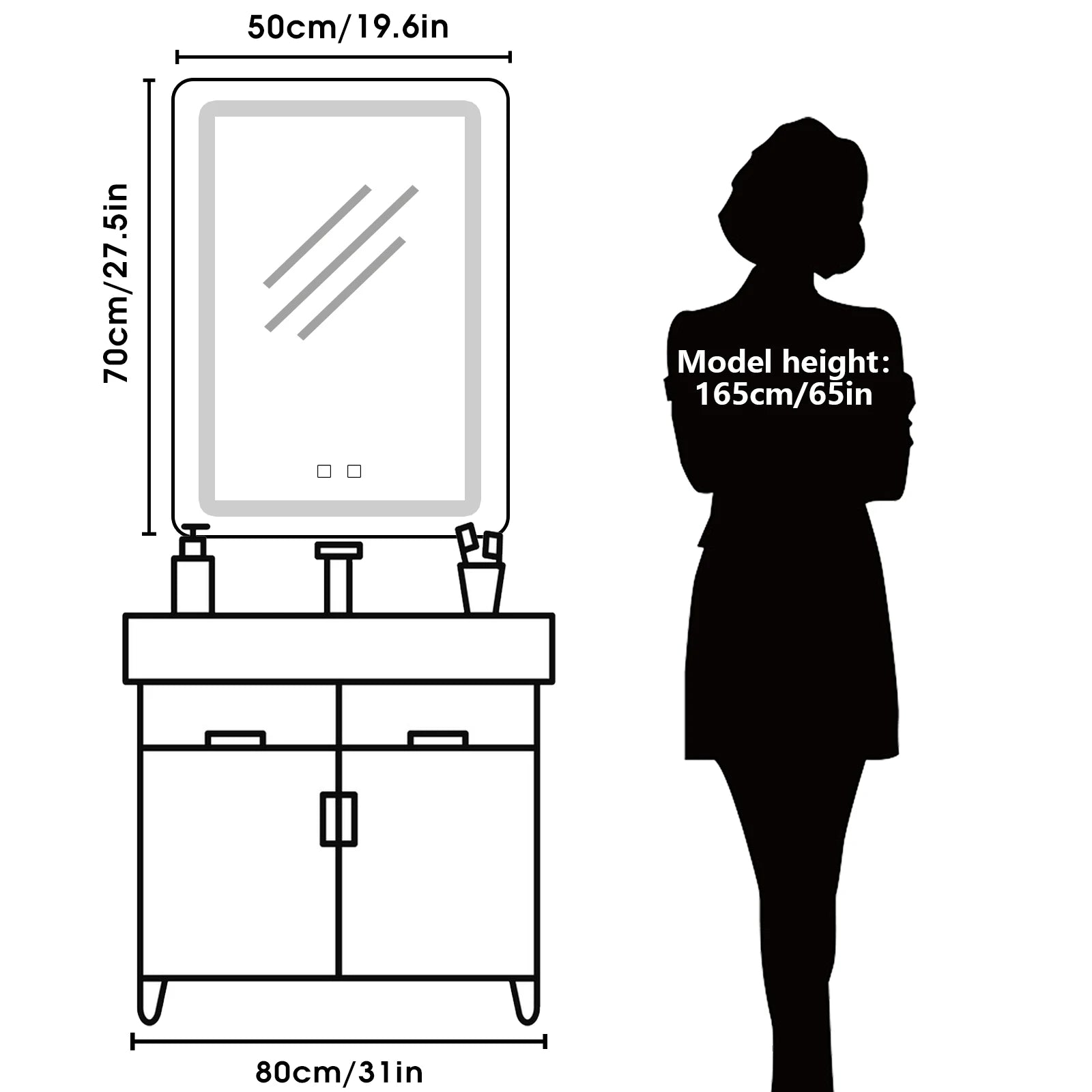 50x70cm LED Bathroom Mirror Vanity Mirrors with Backlit Lights Fogless Makeup Mirror Wall Mounted with Demister