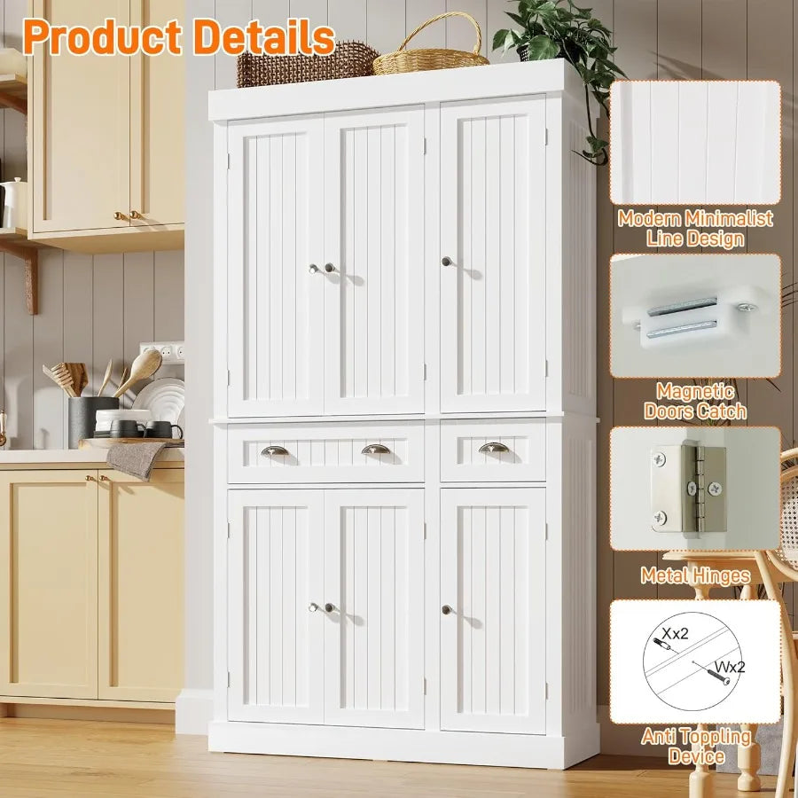 71 Tall Modern Kitchen Cabinet Pantry Storage with Doors and Adjustable Shelves Large Freestanding Food Pantry with 2 Drawers f