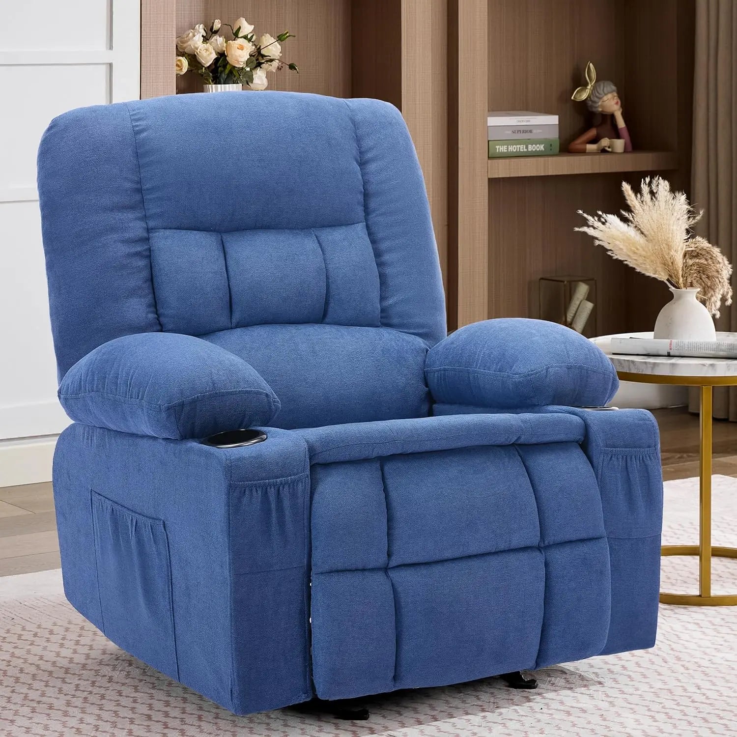 with Massage and Heat, Nursery Rocking Chairs for Living Room, Ergonomic Comfy Relining Chair with Cup Holder